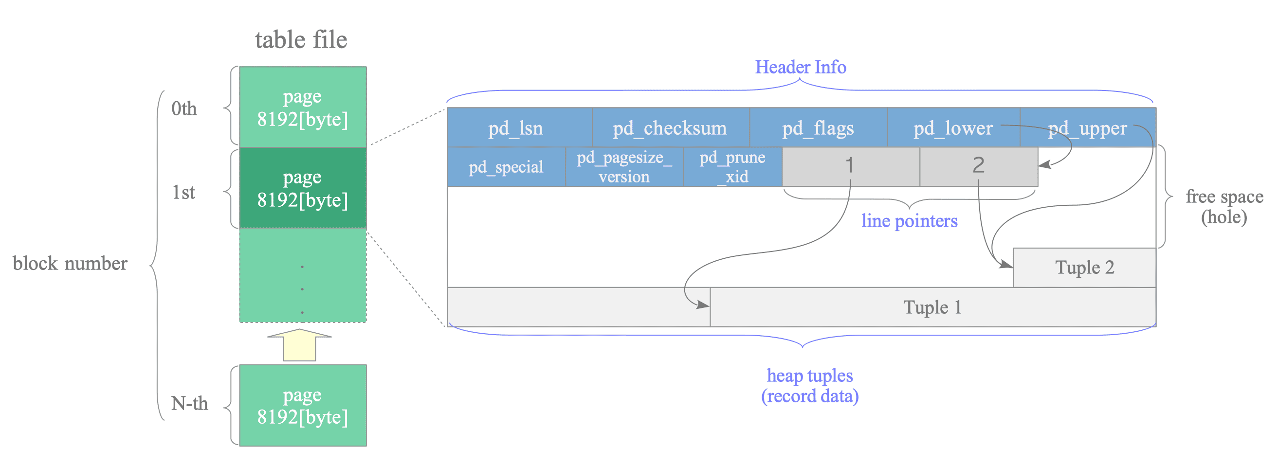 - lp_off: line pointer offset in bytes where the data tuple begins