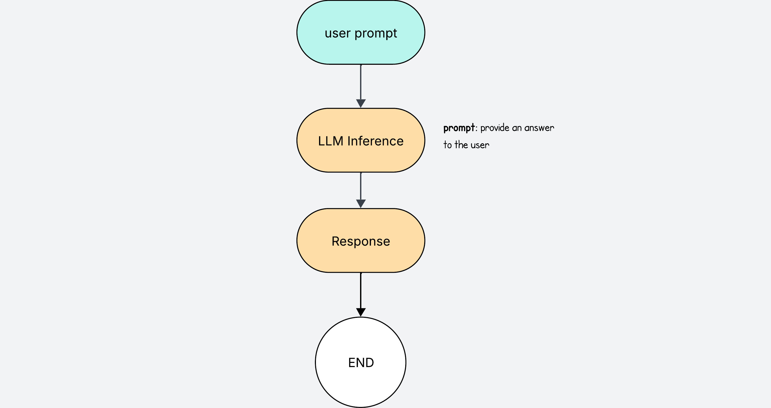 The user writes a prompt, and the LLM returns a response.