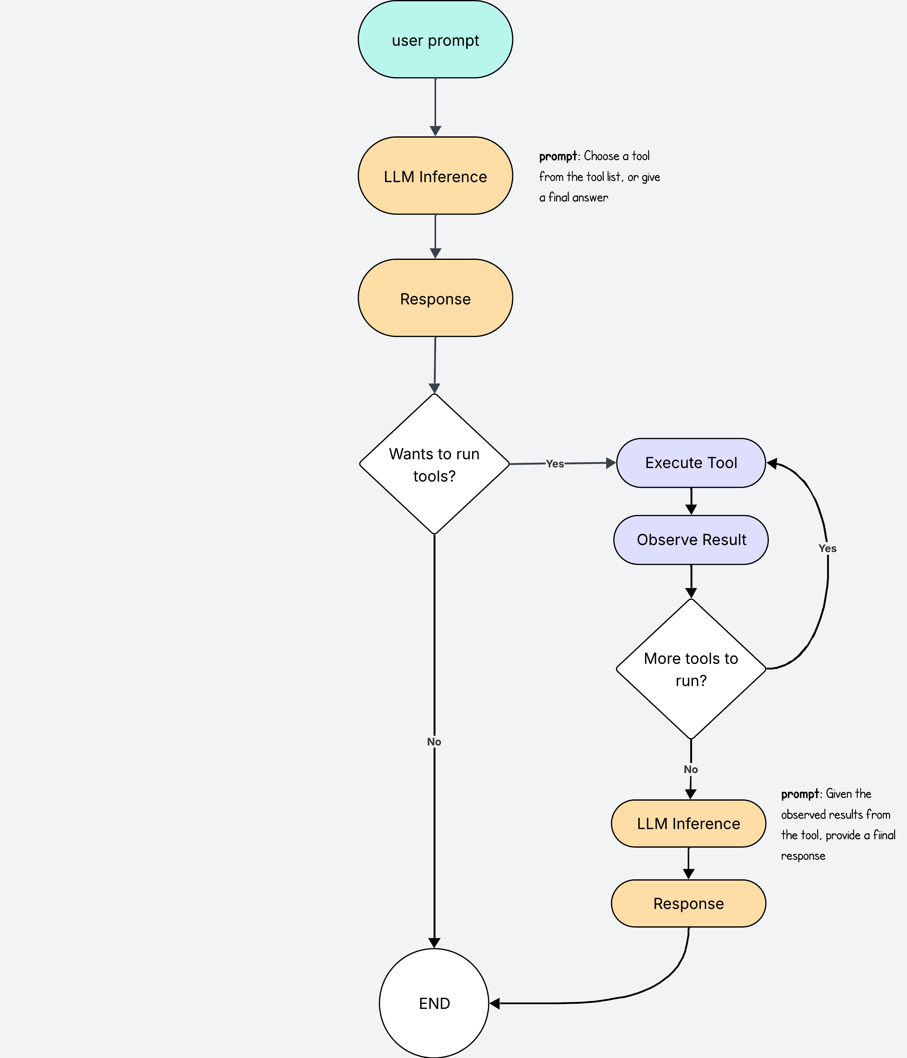 In this example response, we can assume that because it doesn’t need to use any tools, it has all the information it needs, so we treat the answer as the final answer.